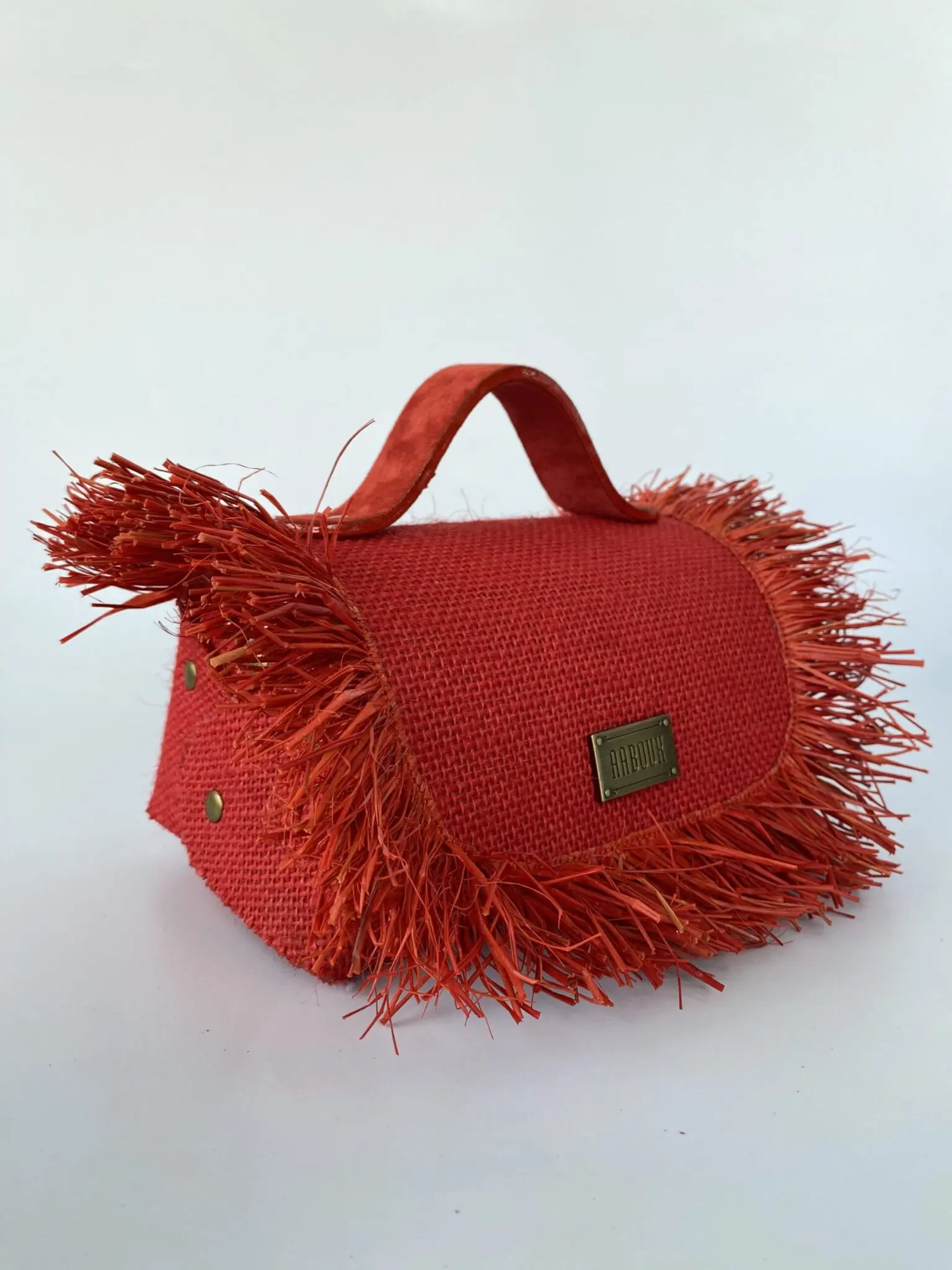 Our luxury signature bag, the Mira, is a compact and curvy wide-base top-handle bag (can also be worn as a crossbody bag) made from sustainable Jute & Raffia featuring our distinct stitch-less construction, adorned with a signature logo and comes in a variety of colours. Jute & Raffia (outer), Suede Lining (inner). Chain strap included. Care Your AABOUX bag is made from Jute & Raffia. It represents countless hours of craftsmanship.