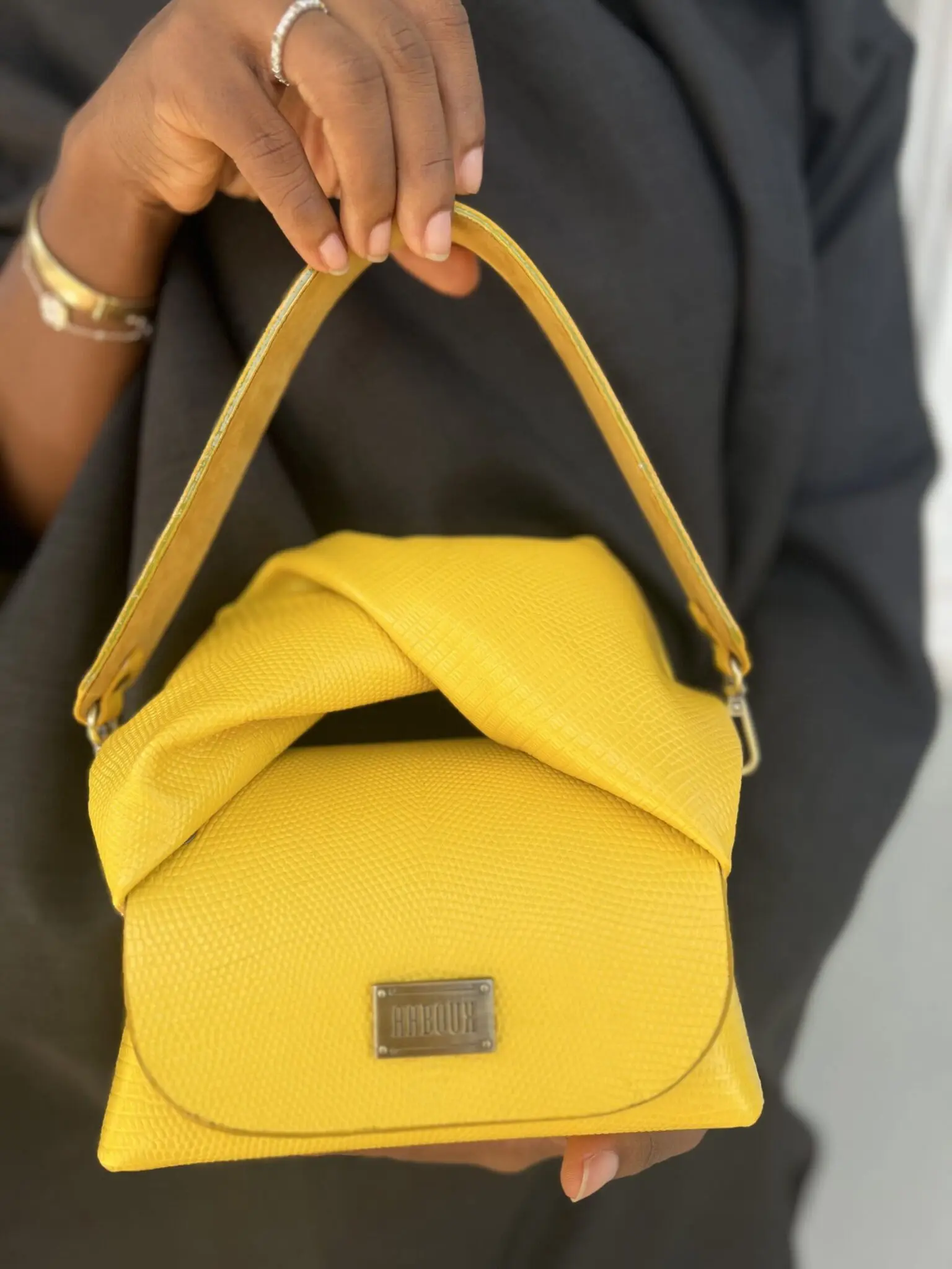 Our luxury signature and best-selling bag, the Mira redefined as Nury, with a twisted handle inspired by the African headwrap. Nury is a compact and curvy wide-base top-handle bag (can also be worn as a crossbody bag) made from the highest quality leathers featuring our distinct stitch-less construction using rivets, adorned with a signature logo and comes in a variety of plain, pony, textured and embossed leathers.CAREYour AABOUX bag is made from luxurious genuine leather. It represents countless hours of craftsmanship. Leather is a natural product. Each hide/skin may sometimes have marks, scars, blemishes or other imperfections. These add to the uniqueness and is proof of its authenticity.