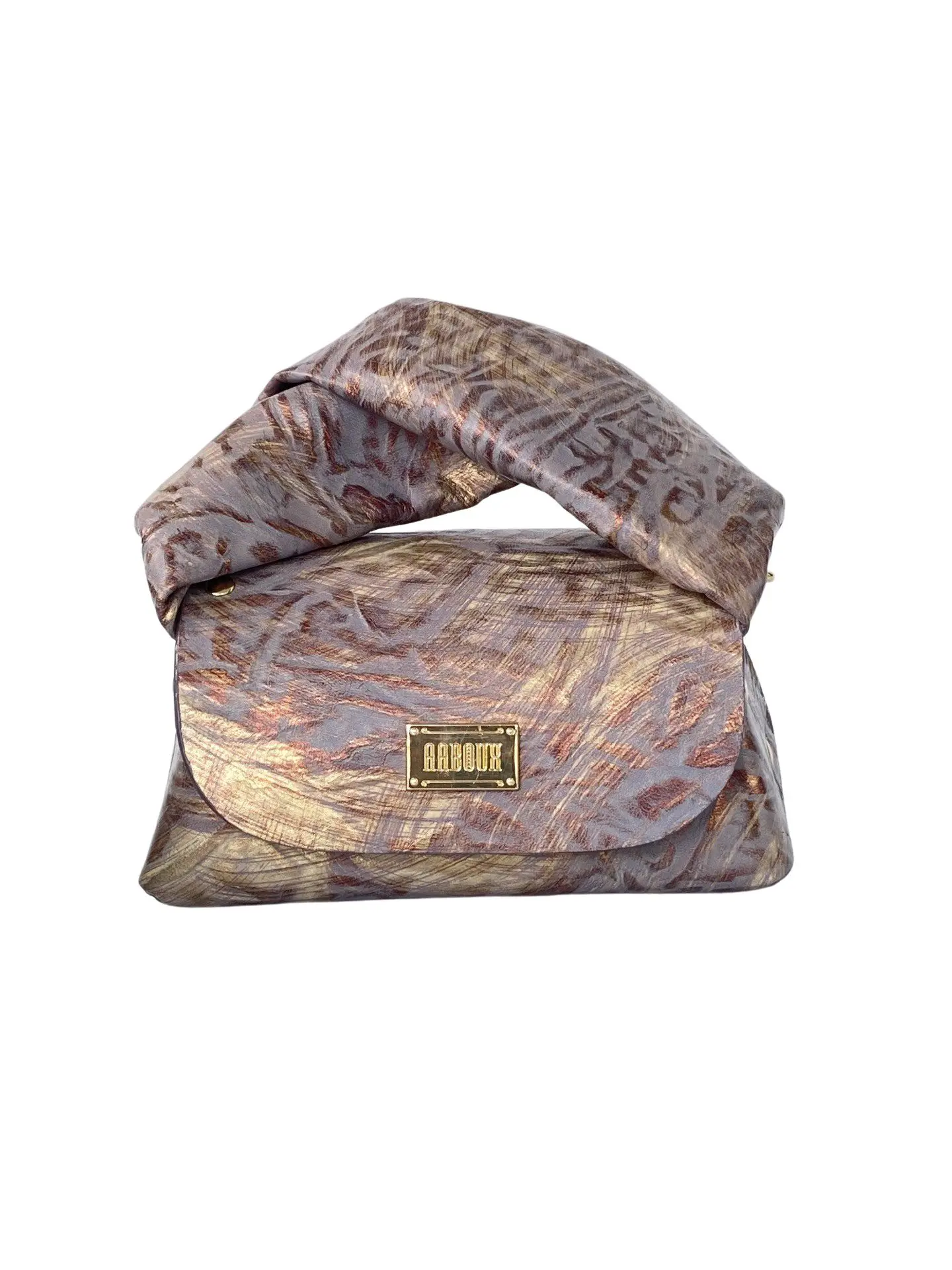 Our luxury signature bag, the Mira redefined as Nury, with a twisted handle inspired by the African headwrap. Nury is a compact and curvy wide-base top-handle bag (can also be worn as a crossbody bag) made from the highest quality leathers featuring our distinct stitch-less construction using rivets, adorned with a signature logo and comes in a variety of plain, pony, textured and embossed leathers.nnCarenYour AABOUX bag is made from luxurious genuine leather. It represents countless hours of craftsmanship.nLeather is a natural product. Each hide/skin may sometimes have marks, scars, blemishes or other imperfections. These add to the uniqueness and is proof of its authenticity.